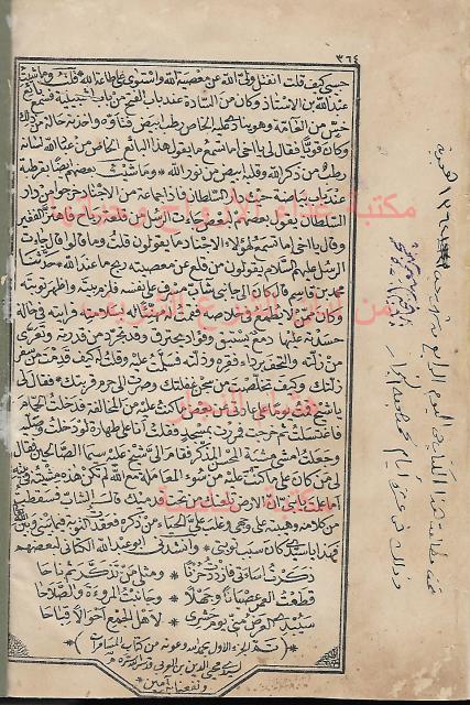كتب على صفحة الكتاب الاخيره : تمت مطالعة هذا الكتاب في اليوم الرابع من شهر رجب 1362 وذلك في عشرة ايام محمد جمعه النجار مع ختم الشيخ باسمه .