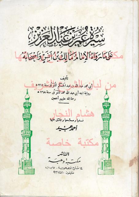 سيرة عمر بن عبد العزيز برواية مالك بن انس
