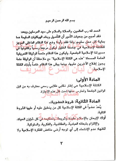 وثائق وبيانات الكتلة الأسلامية جامعة الخليل