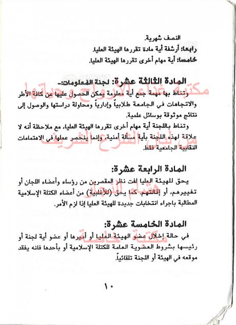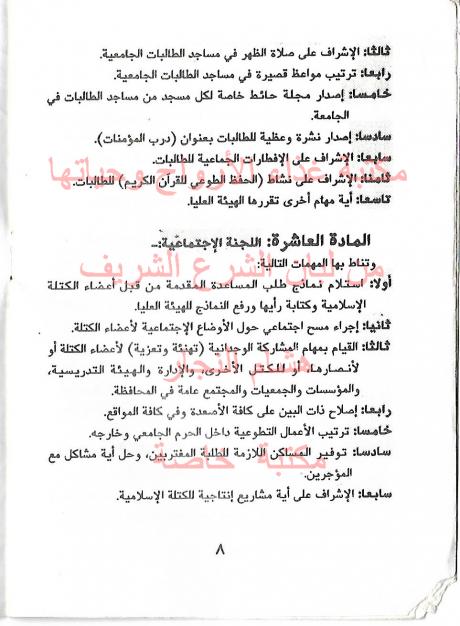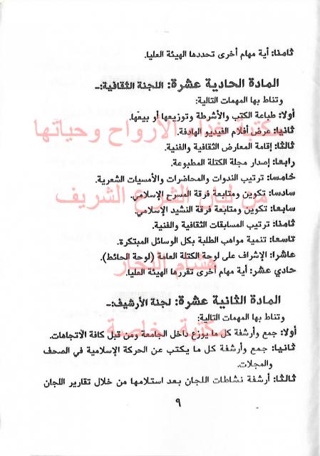 وثائق وبيانات الكتلة الأسلامية جامعة الخليل رقم - 9