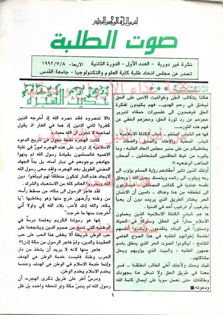 نشرات ومجلات الكتل الطلابية والاسلامية في فلسطين