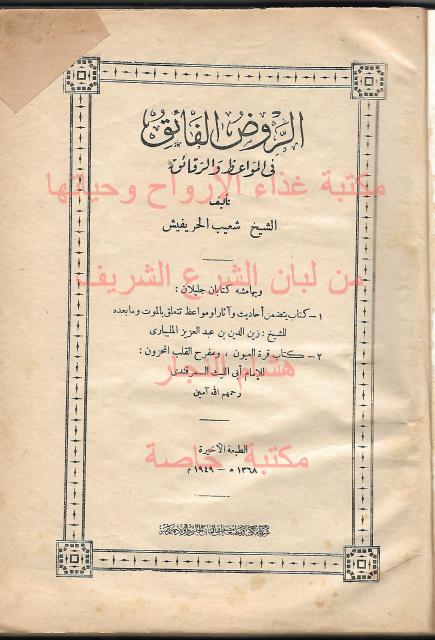 في الهامش كتاب - احاديث واثار تتعلق بالموت - للشيخ زين الدين بن عبد العزيز المليباري . وكتاب - قرة العيون ومفرح القلب المحزون - لامام ابي الليث السمرقندي