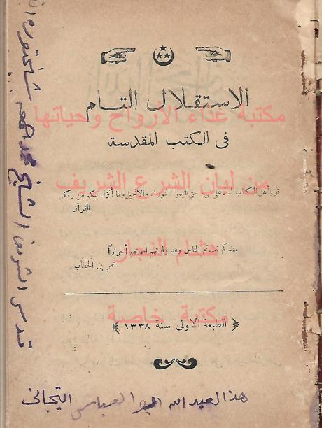 تملك ابو العباس التيجاني ومنه اهداء الى الشيخ محمد جمعه النجار