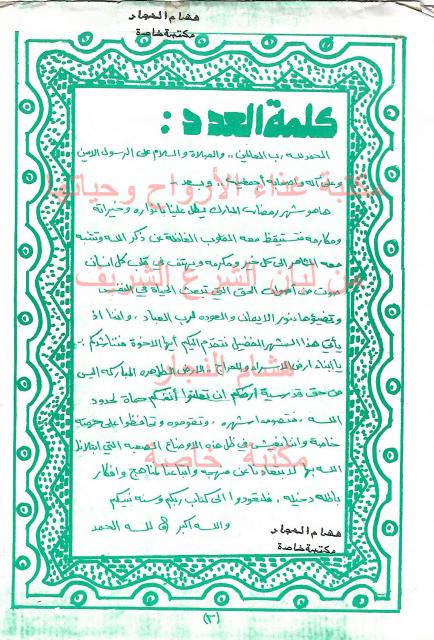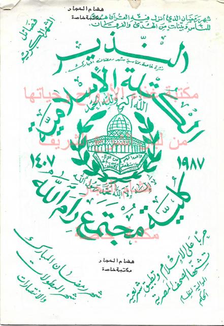 نشرة رمضانية صادرة عن الكتلة الاسلامية في كلية المجتمع رام الله بتارخ 1987