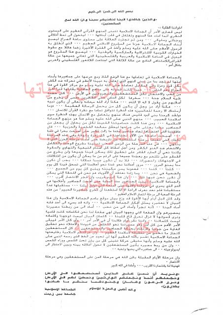 وثائق وبيانات الجماعة الأسلامية جامعة بير زيت