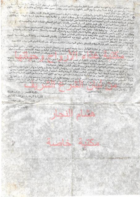 وثائق وبيانات القيادة الوطنية الموحدة للأنتفاضة رقم - 1
