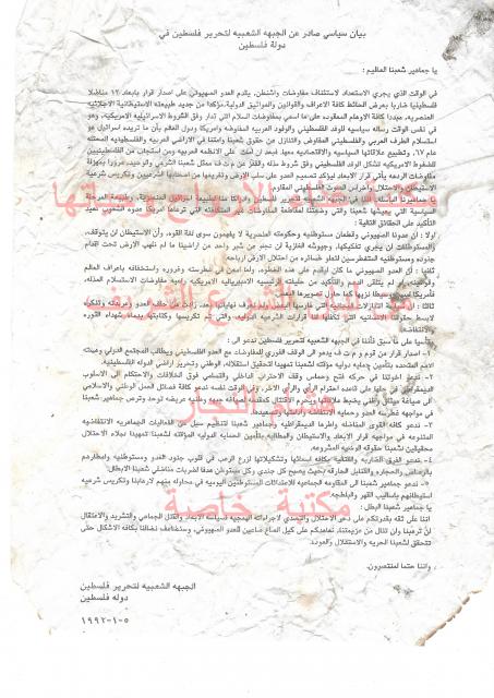 وثائق وبيانات الجبهة الشعبية لتحرير فلسطين رقم - 5