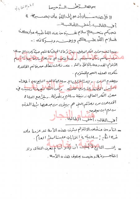 وثائق وبيانات الكتلة الأسلامية جامعة الخليل