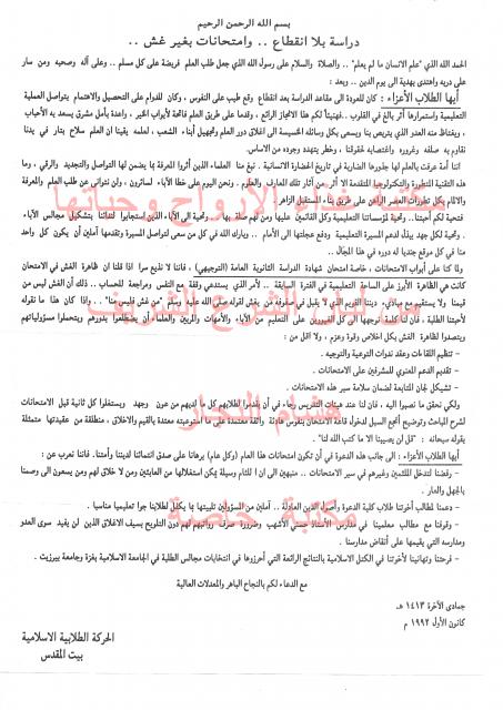 وثائق وبيانات الحركة الطلابية الأسلامية رقم - 4