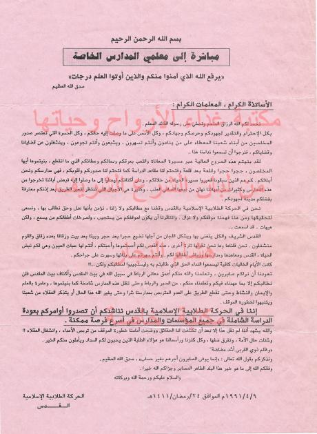 وثائق وبيانات الحركة الطلابية الأسلامية القدس