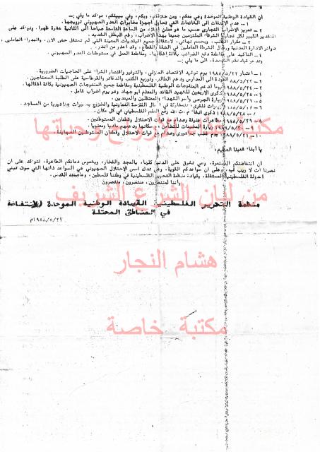 وثائق وبيانات القيادة الوطنية الموحدة للأنتفاضة