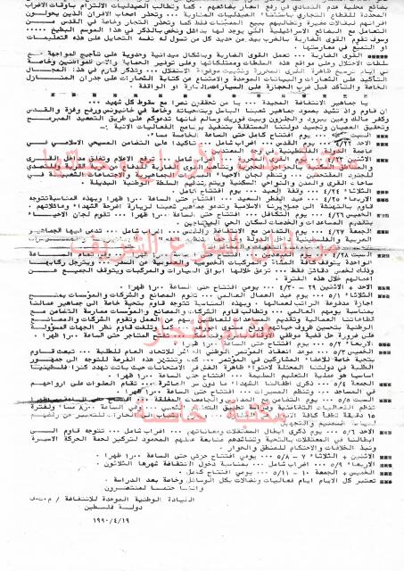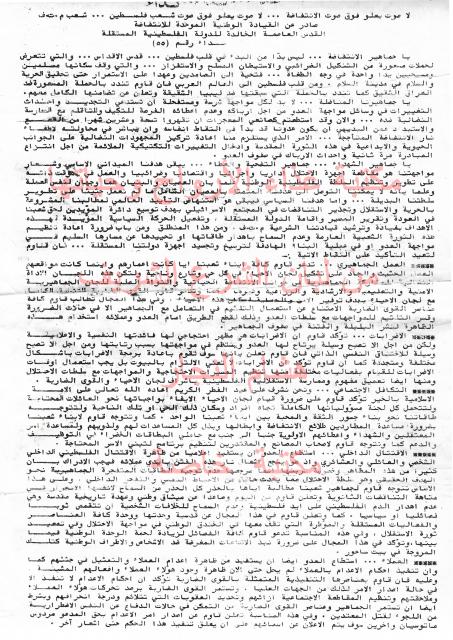 وثائق وبيانات القيادة الوطنية الموحدة للأنتفاضة رقم - 15