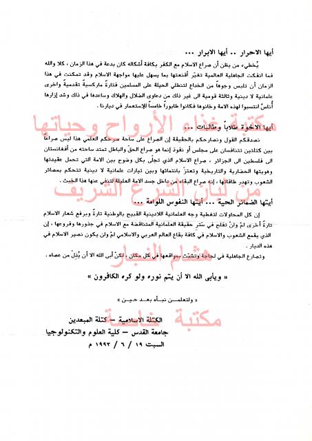 وثائق وبيانات الكتلة الأسلامية جامعة القدس - رقم - 18