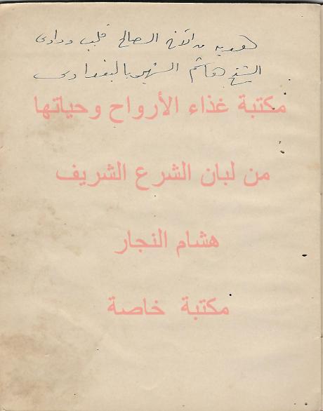عليه اهداء من الشيخ هاشم البغدادي شيخ الطريقة القادرية في فلسطين الى شيخه شيخ الطريقة القادرية محمد جمعه النجار القادري المقدسي