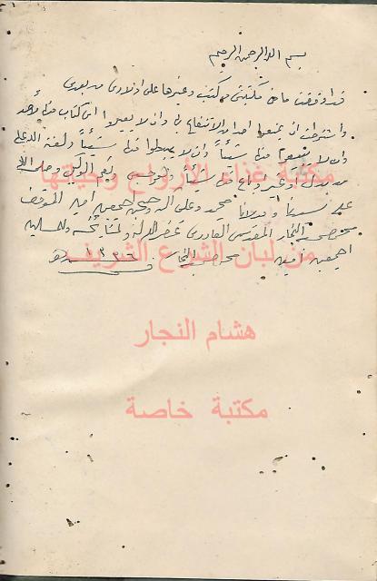 عليه وقفية وتملك للشيخ محمد جمعه النجار بتاريخ 1336- 1918