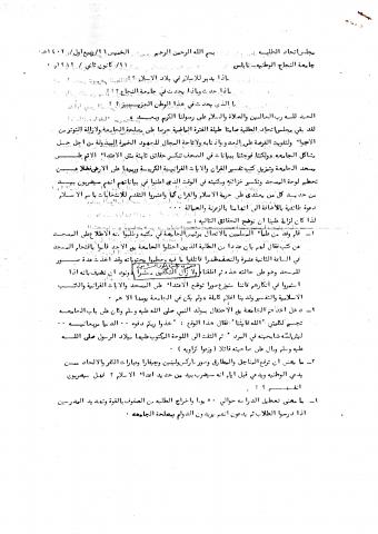 وثائق وبيانات مجلس اتحاد الطلبة - جامعة النجاح الوطنية رقم - 1
