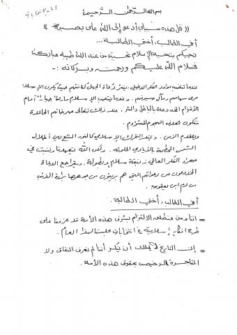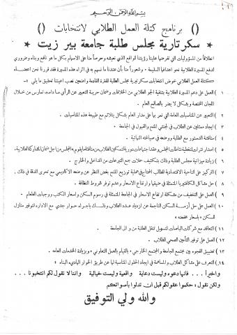 وثائق وبيانات الكتلة الأسلامية جامعة بير زيت - رقم - 43