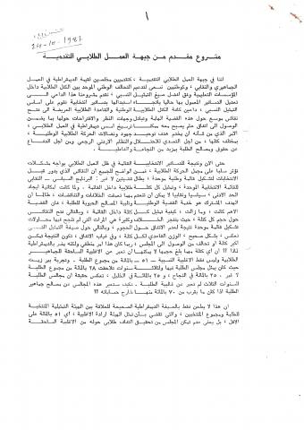 حول وثائق وبيانات حركة الشبيبة الطلابيةفي جامعة بيرزيت - رقم - 3