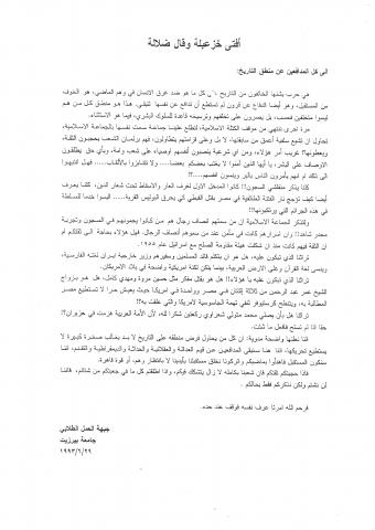 وثائق وبيانات الكتلة الأسلامية جامعة بير زيت - رقم - 46