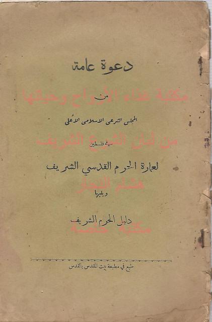 دعوة عامة من المجلس الشرعي الأسلامي الأعلى في فلسطين لعمارة الحرم القدسي الشريف ويليه دليل الحرم الشريف