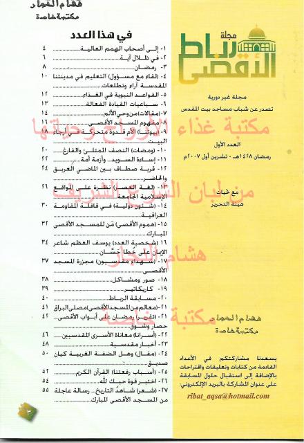 مجلة غير دورية تصدر عن شباب مساجد بيت المقدس العدد الاول رمضان 1438 الموافق تشرين اول 2007
