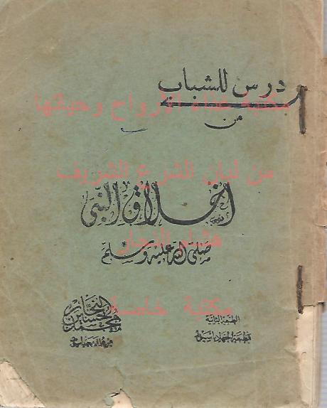 عليه اهداء من المؤلف الى الاستاذ يوسف محمد جمعه النجار بتاريخ 14-3-1359 الموافق 1940 - --------- وعليه قراءة للشيخ محمد جمعه النجار ايضا بتاريخ 1359 وانه اتم قراءته في ساعة واحدة