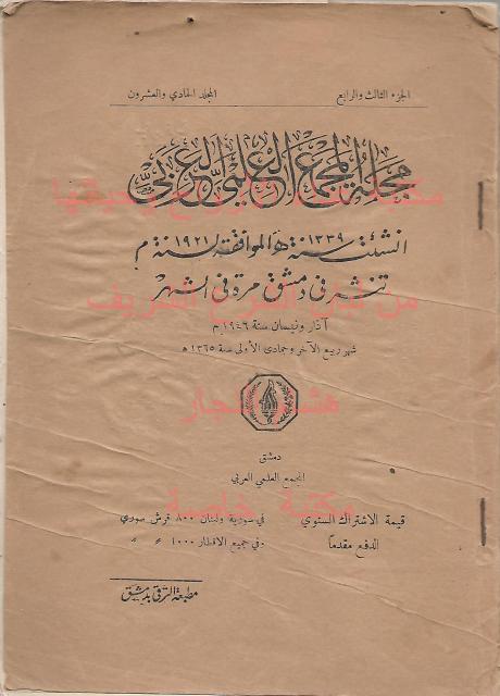 مجلة المجمع العلمي العربي -المجلد الحادي والعشرون - العدد 3+ 4