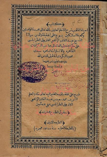 احياء القلوب شرح حكم سيدي محمود الكردي الخلوتي