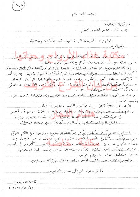وثائق وبيانات الكتلة الأسلامية جامعة بير زيت