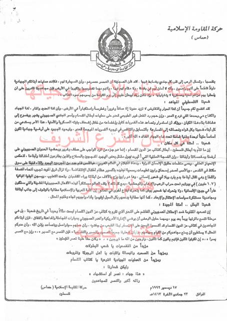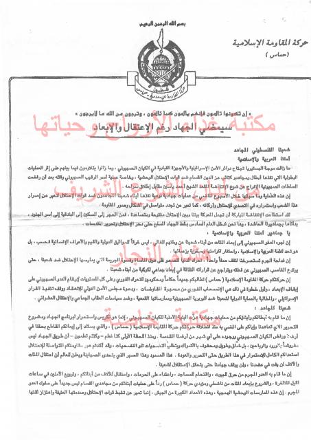 وثائق وبيانات حركة المقاومة الاسلامية حماس رقم -4