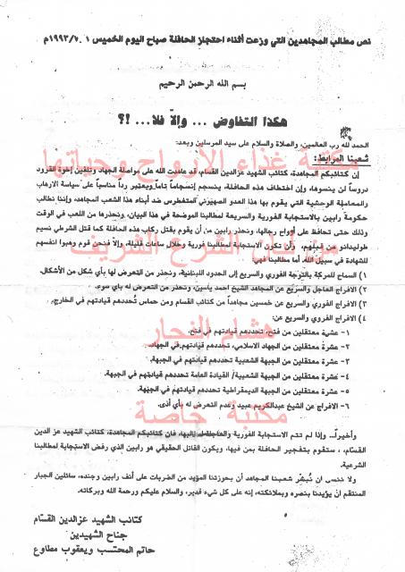 وثائق وبيانات حركة المقاومة الاسلامية حماس رقم -10