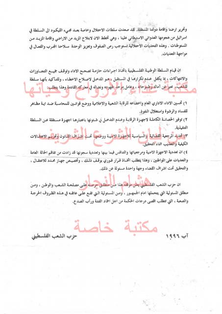 وثائق وبيانات حزب الشعب الفلسطيني رقم - 1