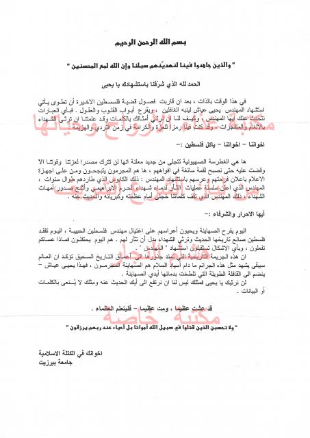 وثائق وبيانات الكتلة الأسلامية جامعة بير زيت - رقم - 24