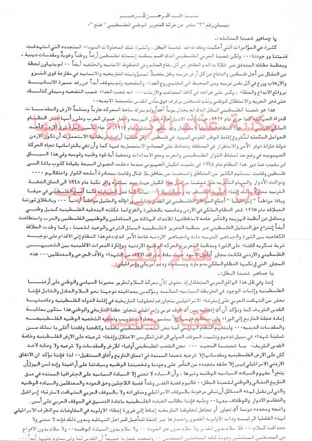 وثائق وبيانات حركة التحرير الوطني الفلسطيني فتح - رقم - 5