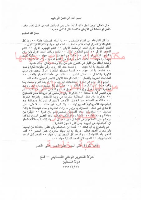 وثائق وبيانات حركة التحرير الوطني الفلسطيني فتح - رقم - 6