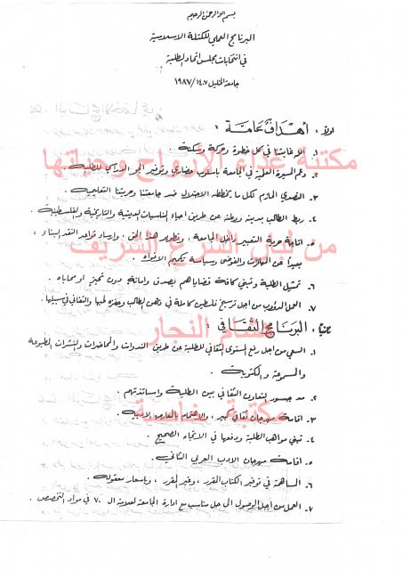 وثائق وبيانات الكتلة الأسلامية جامعة الخليل رقم - 6