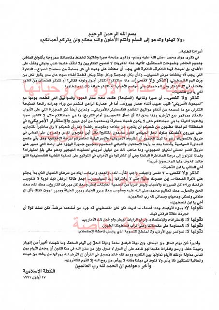 وثائق وبيانات الكتلة الأسلامية جامعة القدس - رقم - 15