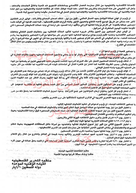 وثائق وبيانات القيادة الوطنية الموحدة للأنتفاضة رقم - 21