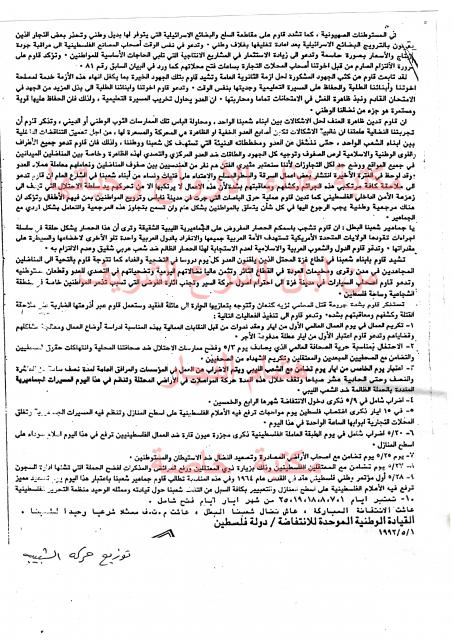 وثائق وبيانات القيادة الوطنية الموحدة للأنتفاضة