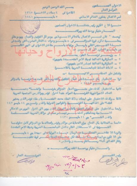 وثائق وبيانات جماعة الأخوان المسلمين في فلسطين رقم - 7