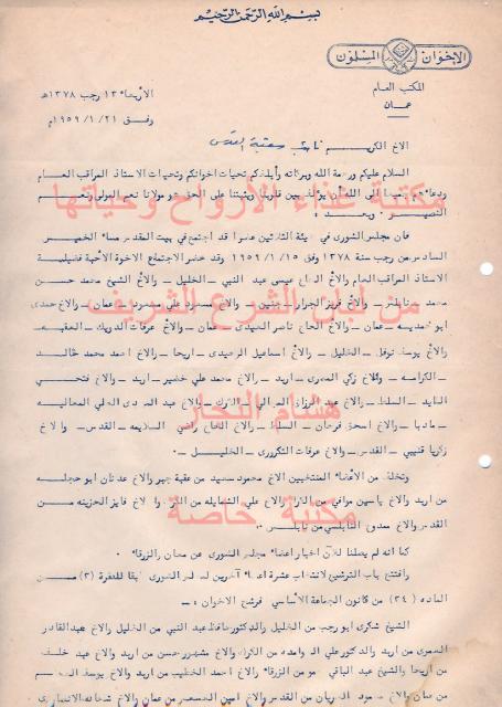وثائق وبيانات جماعة الأخوان المسلمين في فلسطين رقم - 30