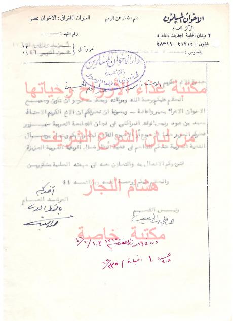 وثائق وبيانات جماعة الأخوان المسلمين في فلسطين رقم - 52
