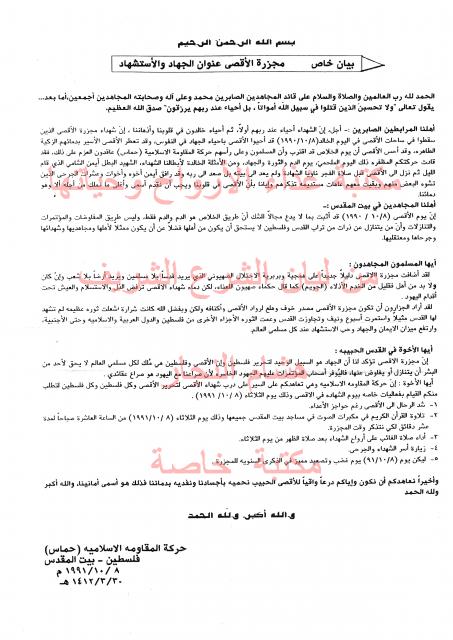 وثائق وبيانات حركة المقاومة الاسلامية حماس رقم - 123