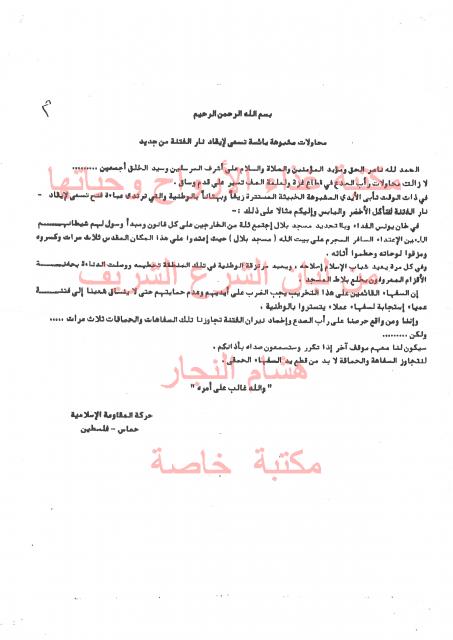 وثائق وبيانت حركة المقاومة الاسلامية حماس