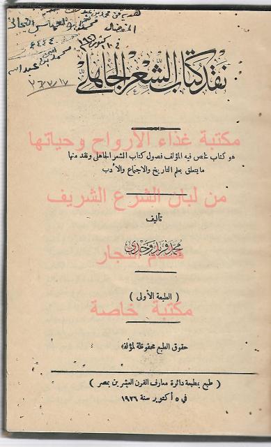 اهداء من محمد بن عبدالله الدغستاني الى الشيخ محمد جمعه النجار سنة 1926