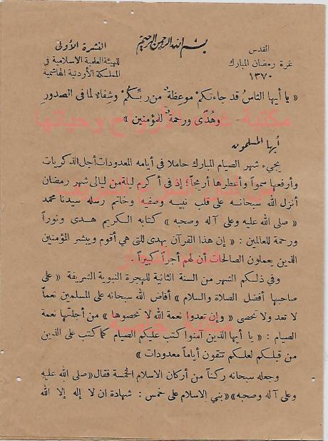 نشرة رمضانية للهيئة العلمية الاسلامية في الاردن صدرت في رمضان عام 1370 - 1950 . كان من اعضائها عبدالله غوشه وعبد الحميد السائح وحلمي المحتسب رحمهم الله .