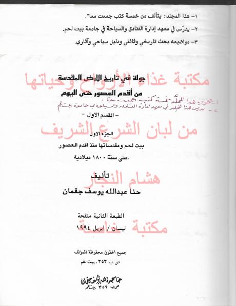 جوله في تاريخ الارض المقدسة من اقدم العصور حتى اليوم - القسم الاول - الجزء الاول
