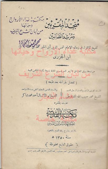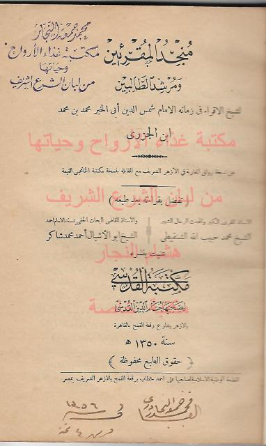 عليه قراءة للشيخ محمد جمعه النجار بتاريخ 1937- 1356