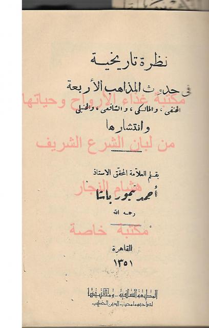 نظره تاريخية في حدوث المذاهب الاربعةالحنفي والمالكي والشافعي والحنبلي وانتشارها