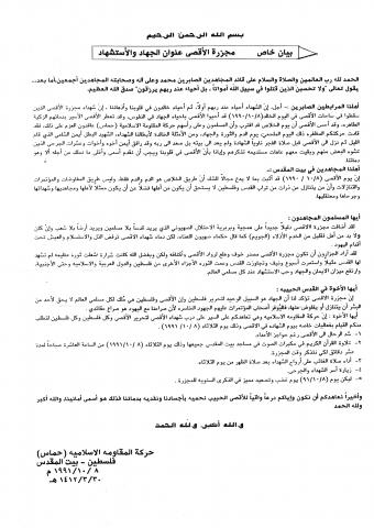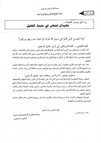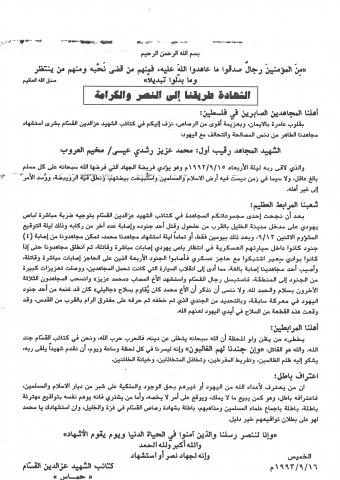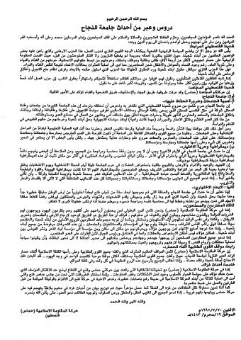 وثائق وبيانات حركة المقاومة الاسلامية حماس رقم - 121